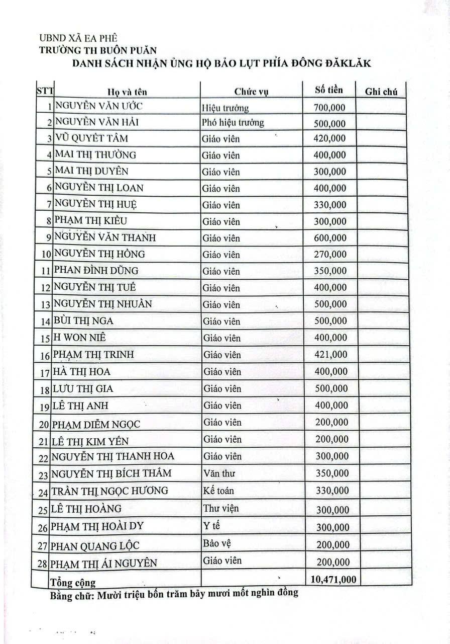 Những tình cảm của tất cả quý thầy cô, quý phụ huynh và các em đã trích ra mua 300 cuốn vở và số tiền 20 triệu đồng được trao tặng cho trường TH Hòa Trì 1 xã Hòa Phú tỉnh Đắk Lắk để góp phần xoa dịu nhiều mất mát đối với thầy cô và các em học sinh trong cơn lũ lụt vừa qua.